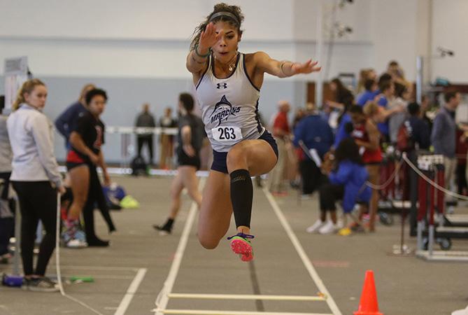 Sports Information|Courtesy Alizae Dollins leaping in the triple jump at the ODAC Indoor Track and Field