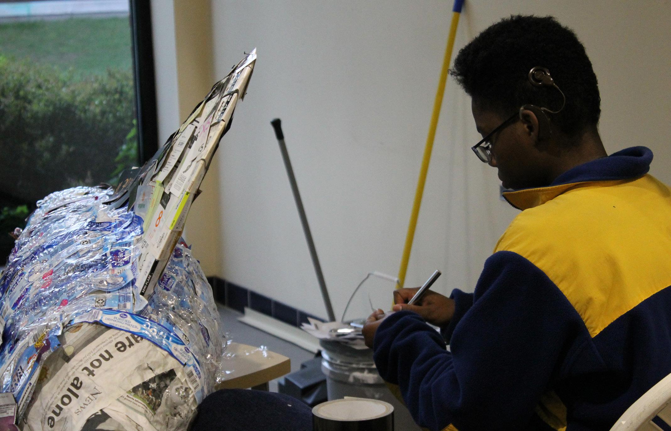 Wednesday also featured a speaker, VWU alumni Sydney Covey, as well as the highly-anticipated reveal of the “trash-toart” Marlin statue. At the beginning on the month, Ginny Videll sent out a request on behalf of the Physical Plant for recyclable items to make a Marlin statue. The items could be dropped off or scheduled for a pick-up, in order to allow for maximum participation. Speculation about what a