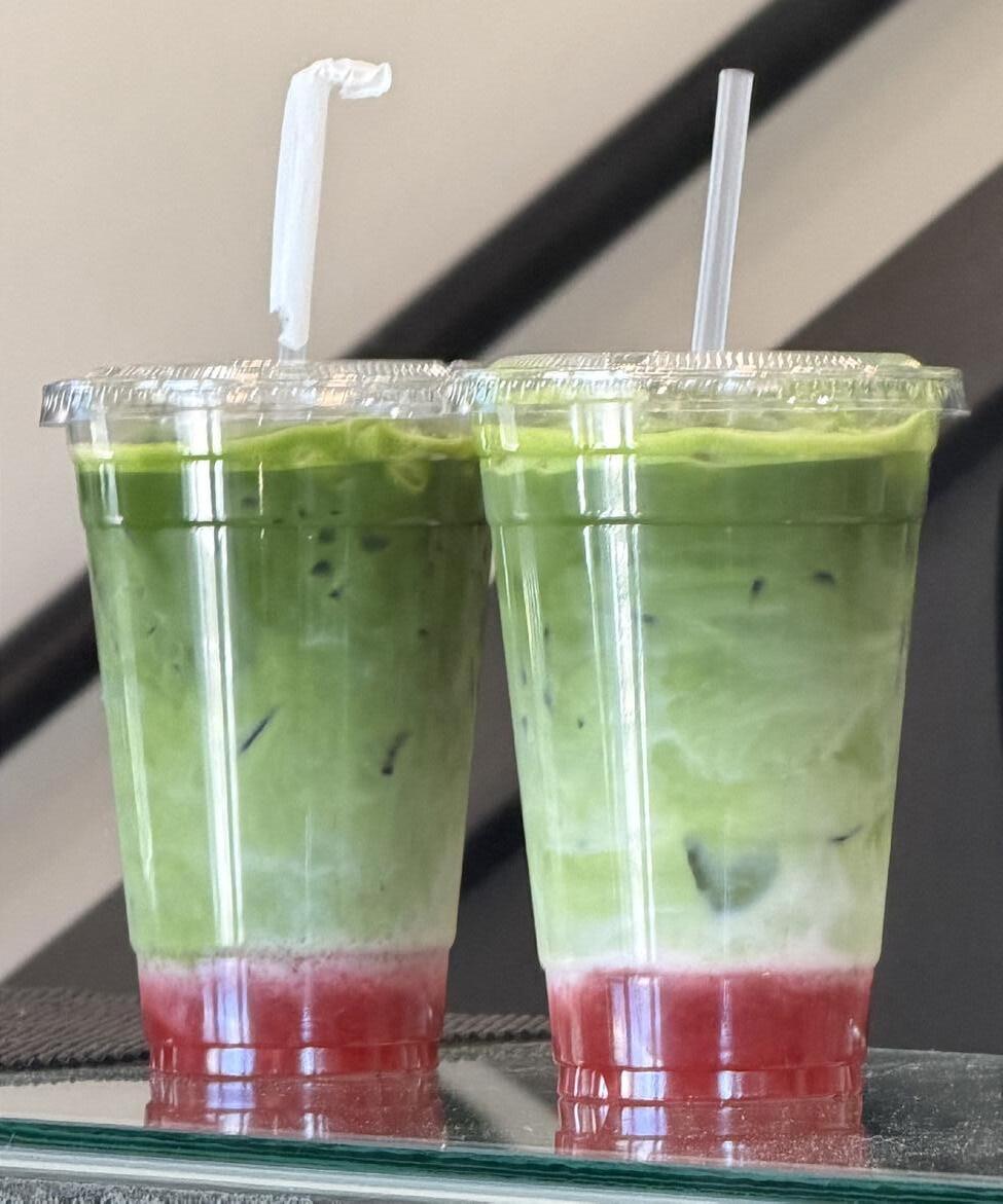 stunning and vibrant in color. One featured red syrup on the bottom and a perfect layer of green matcha on top. Almost everyone took pictures of their drinks before they touched them.