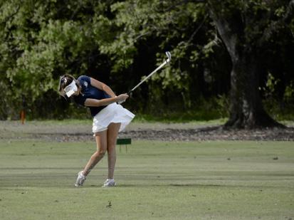 Senior Ashlee Bobzin drives the ball off the tee at the Chick-Fil-A Collegiate Invitational in Rome, GA.