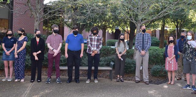 Students stand in silence during the memorial ceremony for Sept. 11, 2001.