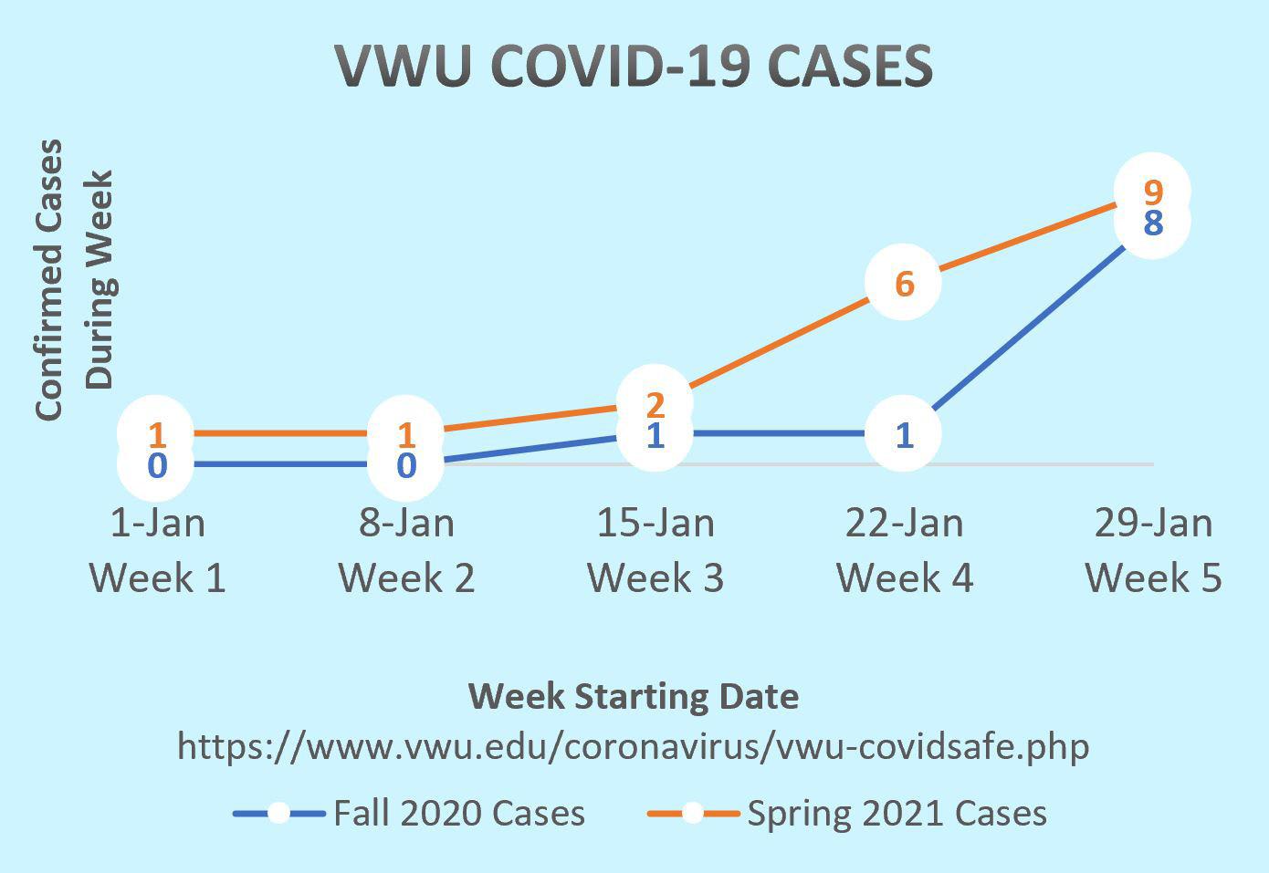 According to the Virginia Department of Health as of Feb. 9, Virginia has had over 530,000 total confirmed and probable cases of COVID-19, over 20,000 confirmed and probable hospitalizations, and nearly 7,000 confirmed and probable deaths. Regarding localities near VWU, Virginia Beach has had 28,090 cases of COVID-19 and Norfolk has had 13,623 cases as of Feb. 9.