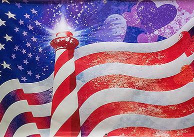 thinking of additional ways to unite Americans. “I do a lot of my best thinking away from my computer, at my painting easel, and this is what inspired the paintings ‘Love Thy Neighbor’ and ‘Purple Empathy’ – these were the first Unity Flags created,” Nelson said.