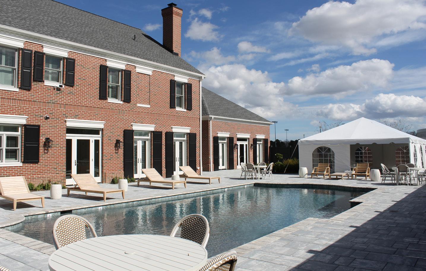 The terrace is home to a pool, garden and large tent for campus events. It is meant to hold about 150 people. The tent will be standing throughout the spring to give the option of hosting parties outdoors, even in unpredictable weather.