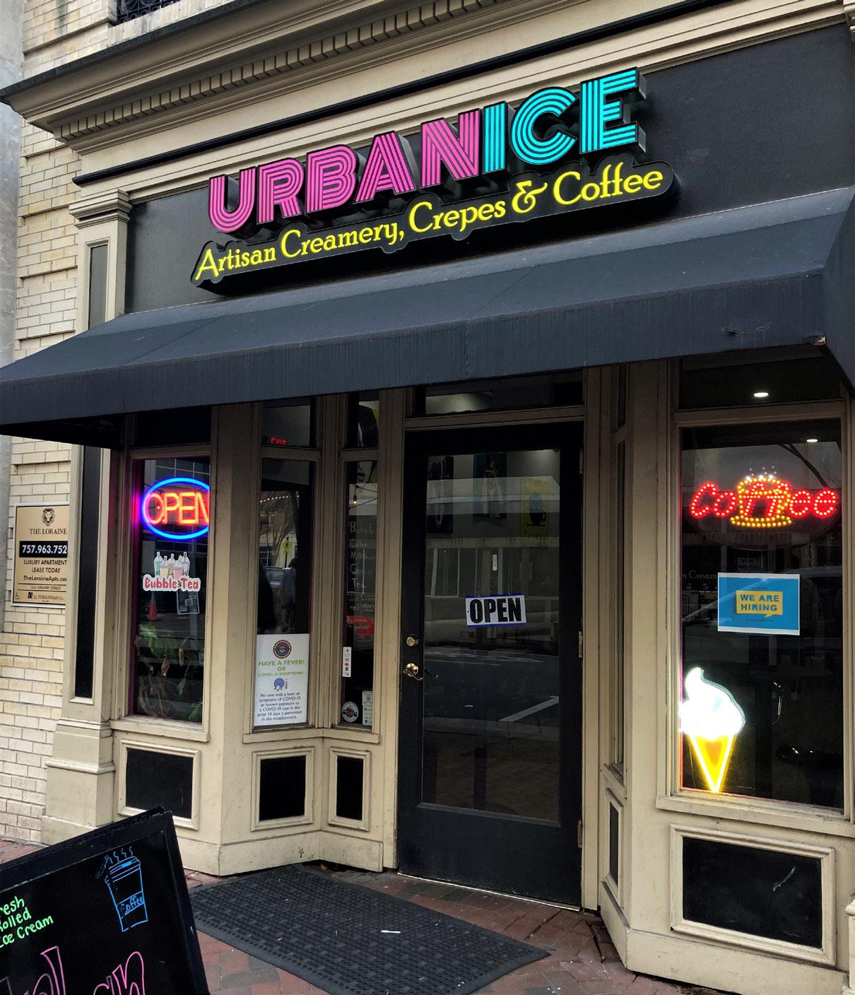 Urban Ice is located in downtown Norfolk—a block away from MacArthur Mall and amidst a neighborhood of intriguing restaurants. Unlike many rolled ice cream businesses, it offers unlimited customizations, mixed in or on top.