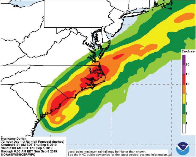 On Friday, Sept. 6, and Saturday, Sept. 7, Hurricane Dorian affected our area. This hurricane affected many Caribbean nations and the East Coast of the United States. The Hampton Roads region was under a storm surge warning, flash-flood warning and tropical storm warning by the National Weather Service. As a result of these warnings and the expected rainfall and tropical storm winds, Virginia Wesleyan canceled classes on Friday Sept. 6, the first week of fall term.