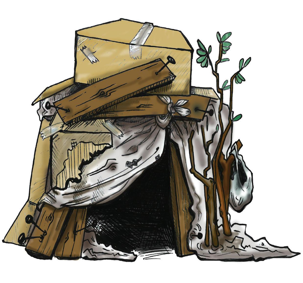 Students have limited materials to build their shacks, including cardboard, tarp, duct tape and wood.