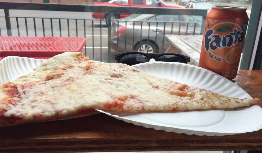 Benny Damato’s offers regular slice of cheese pizza only costs about $4 with extra for some toppings, but the size is what makes this slice a popular eat and picture moment. you could even take on a large 28 inch pie for $30.