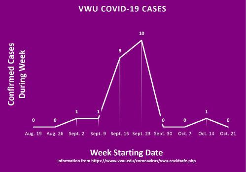 During the week of Oct. 14 to Oct. 20, one case was confirmed on the weekly COVID-19 update on Wednesday, Oct. 21, and none from Oct. 21 to Oct. 28. Since the beginning of the semester, there have been 21 confirmed cases of COVID-19. Despite in-person classes ending this fall semester on Nov. 20, the administration reminds students, faculty and staff to remain cautious in reducing the spread of the virus while the term is still in session.