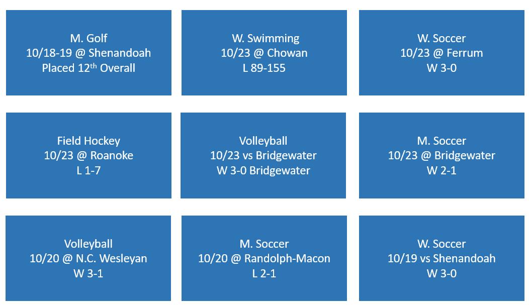 After their last ODAC regular season game, the Marlins are sitting in third place after their loss to their rivals the Yellow Jackets of Randolph-Macon College 3-0. Their next competition will be against the Captains of Christopher Newport University and the Saints of Marymount University on Oct. 29 at 3:00 p.m.