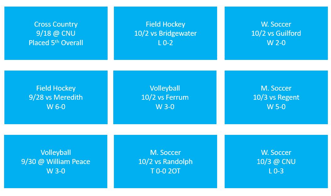 On Sept. 20, the Marlins of the Rocket League Esports team fell to the Bulldogs of James Madison University in a 3v3 match in a best of five series 3-0. The following week, the Esports team competed against SAU in Overwatch with the Marlins taking home the win. Finally, a week after that on Oct. 4, the Marlins competed in another Rocket League competition in a best of five series against WVU PSC beating them 3-1 in a series of five matches. This put the Marlins in a three-way tie for third place for League play with Old Dominion University and West Virginia.
