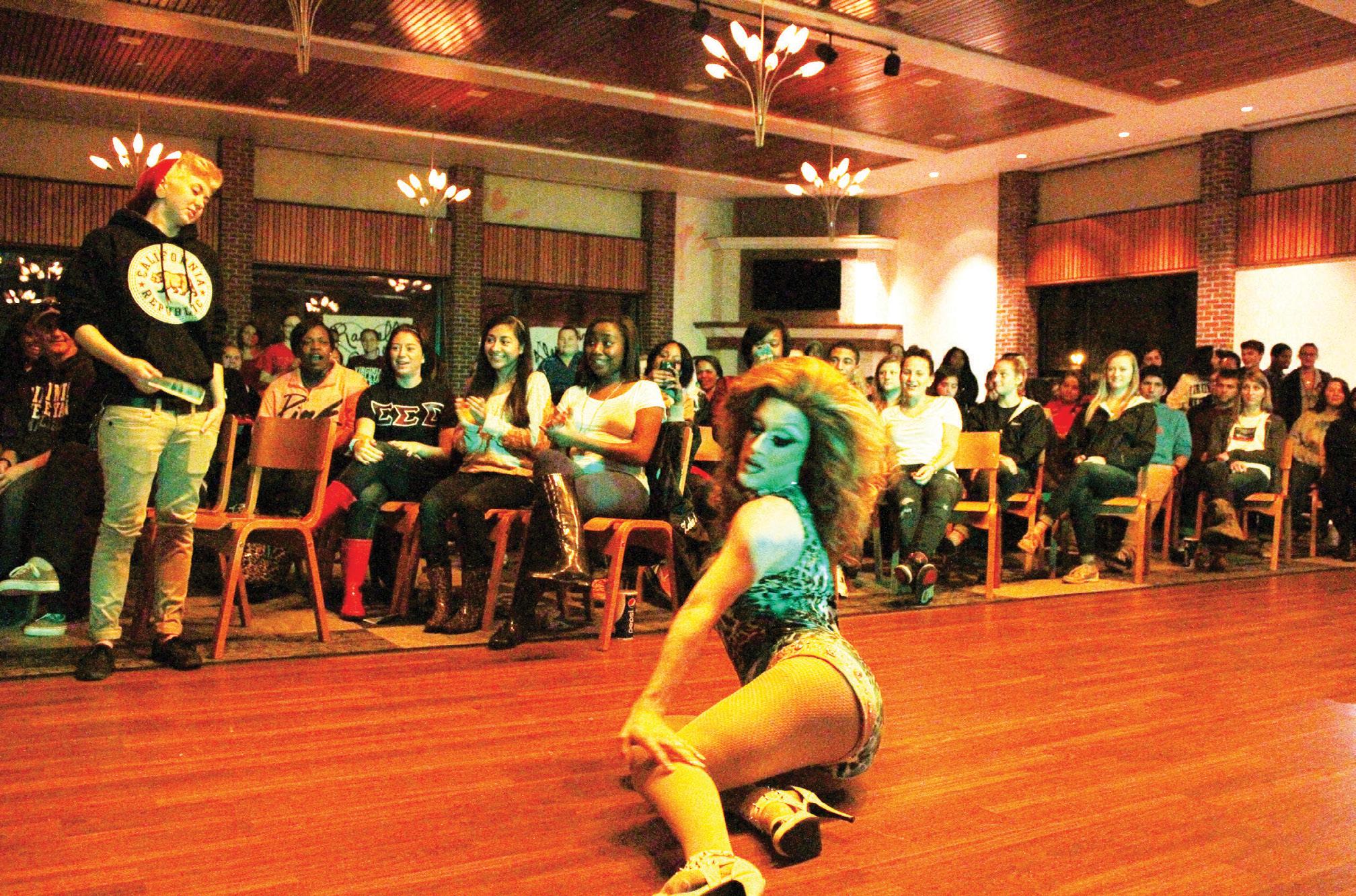A group of drag queens performed in the Boyd Dinning Center Thursday Nov. 6, to a variety of songs. The show, hosted by the Wesleyan Activities Council (WAC) and one of VWC’s own students, drew one of the largest crowds ever for a nonathletic event. The queens danced and lip-synced for their lives in a do-or-die-allout-drag extravaganza.