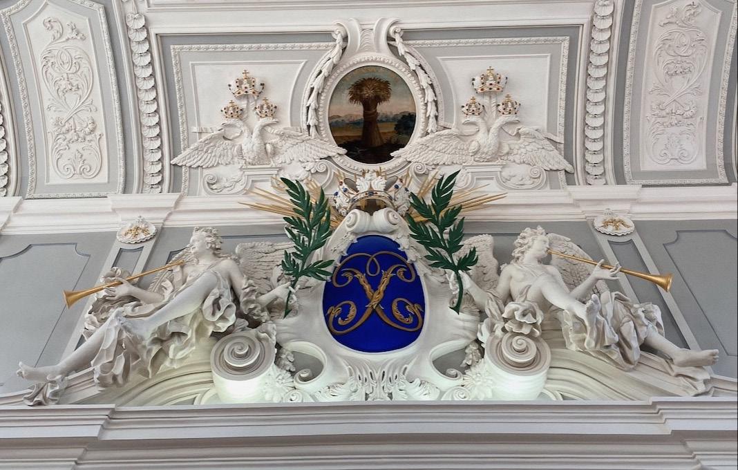 You can find yourself spending the majority of your time studying the cartouches of Peter the Great and Catherine I or perhaps looking at all the Russian-Byzantine symbols that hold great meaning. Don’t forget to look up. The ceiling is dominated by an oval mural depicting the story of Diana and Actaeon from Ovid’s Metamorphosis.
