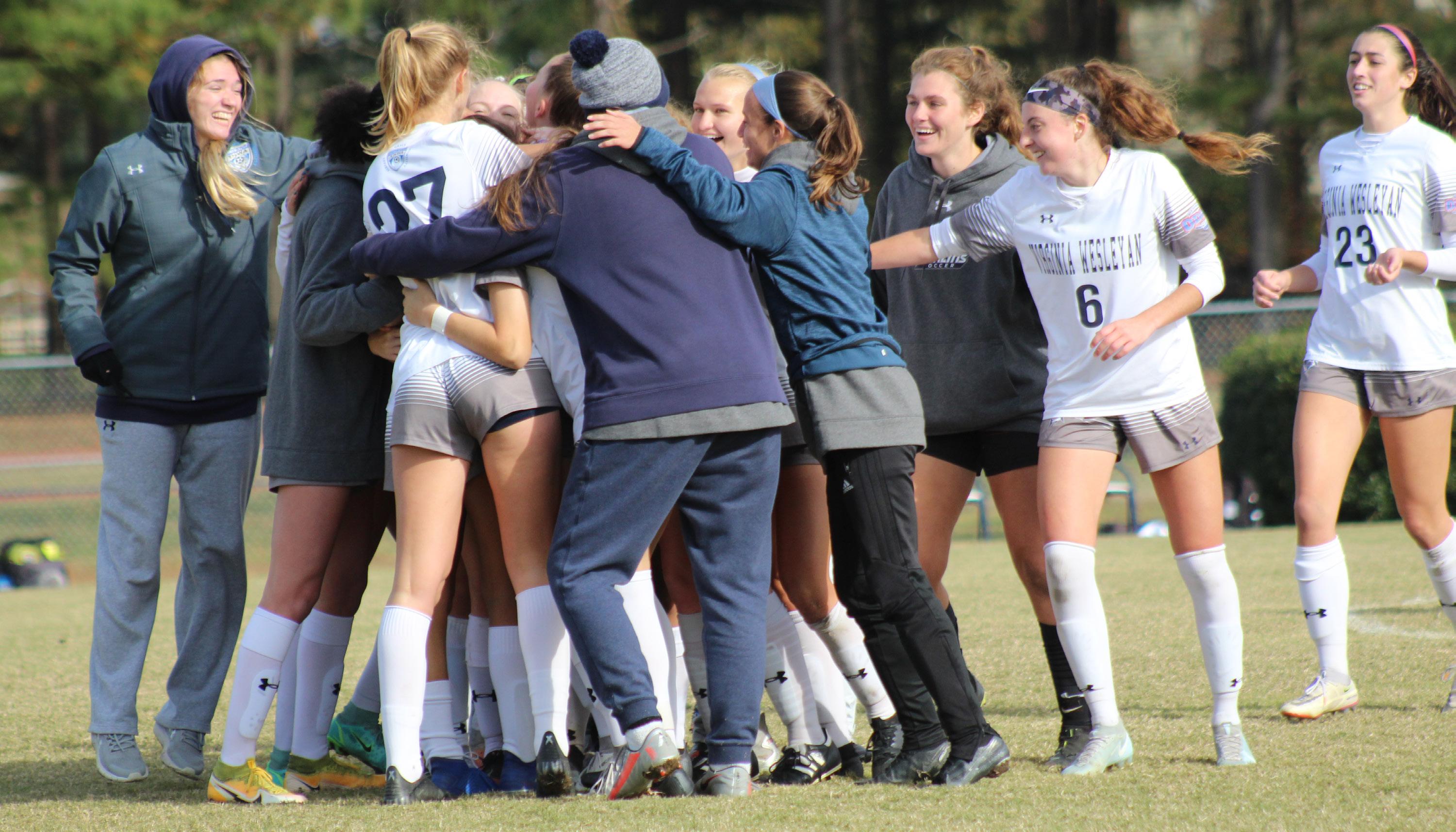 The Women’s Soccer team celebrates their win against the University of Lynchburg at the ODAC Championship game on Sunday, Nov. 7. The final score was 1-0.