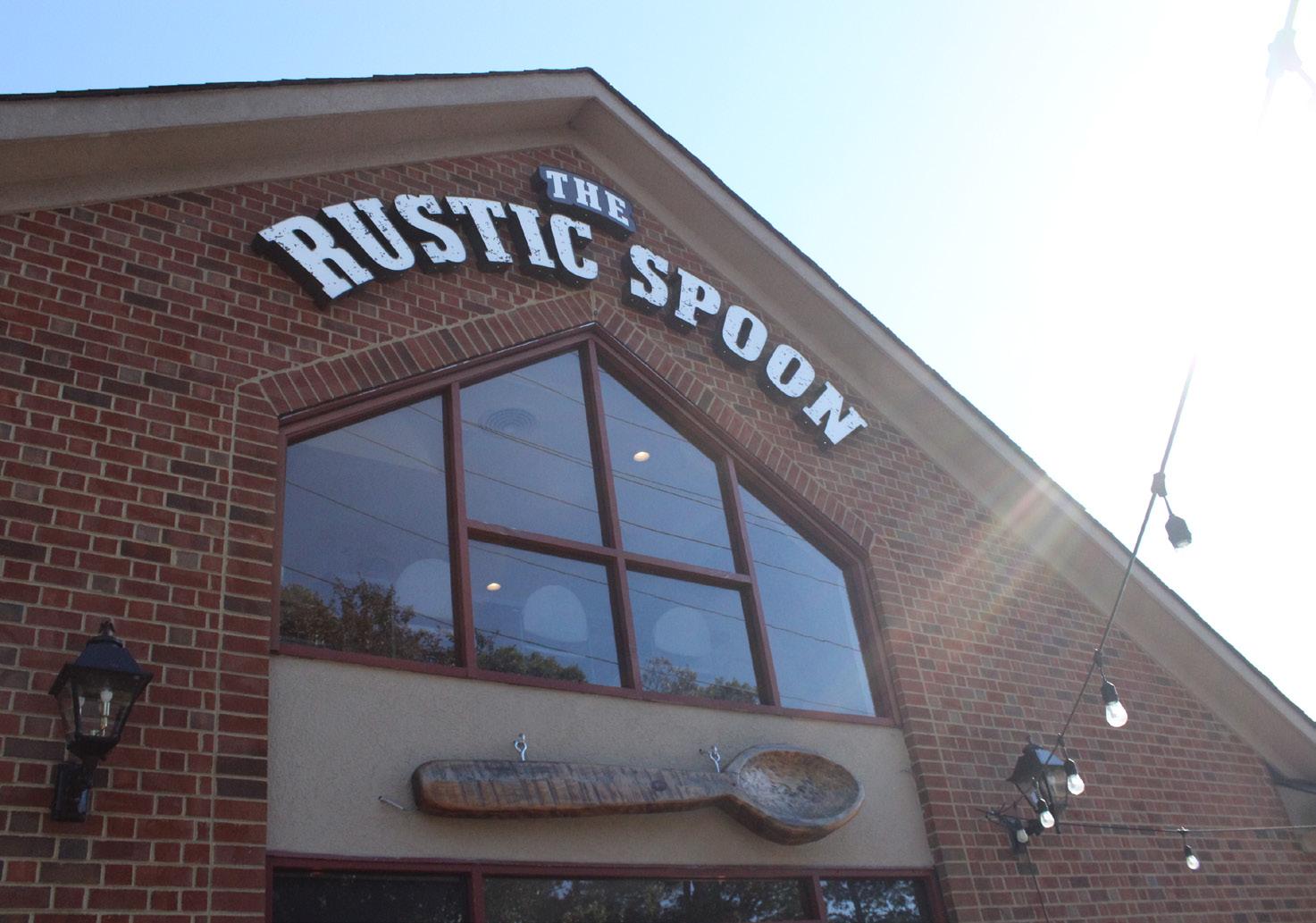 The Rustic Spoon displays its giant spoon on the front of the restaurant entrance.