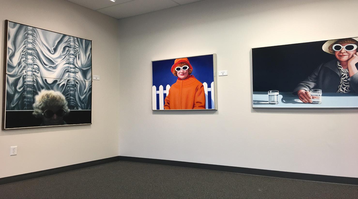 Artworks featured in the Barclay Sheaks Gallery on campus for guests to visit.