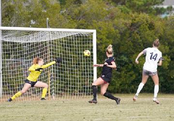 In the semifinals game, sophomore Julia Marrone scored a long goal in the second half to send the Marlins to the finals. However, the pressure of being 0-0 in the second half of all games that they played in the ODAC tournament is something that this team has managed well.