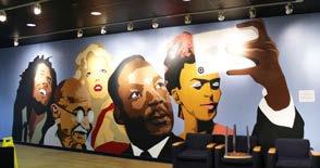 Bob Marley, Martin Luther King Jr., Gandhi, Frida Kahlo and Marilyn Monroe pose for a selfie in the Jane P. Batten Student Center.
