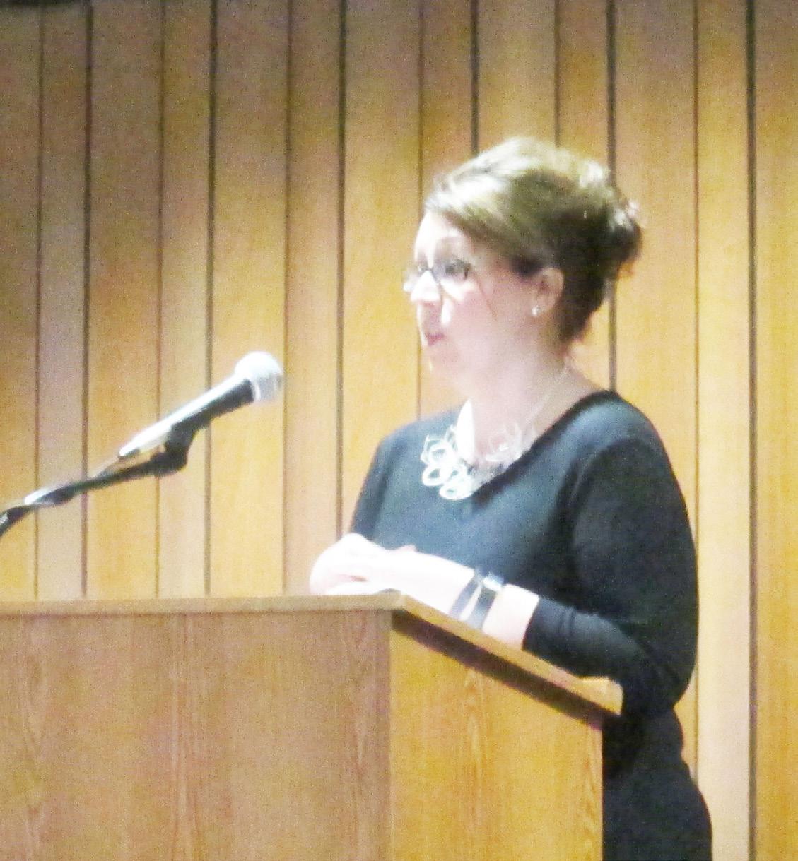 Megan Hughes | Courtesy Lindsey Reynolds, chief operating officer of the National Democratic Committee, gives a speech during the Marlin Prestige.