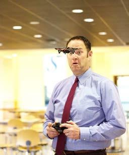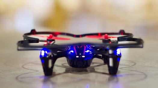 The tiny flying drone owned by the college sits awaiting takeoff on a tabletop in the Batten Student Center. BY ASHLEY KLINE aakline@vwc.edu