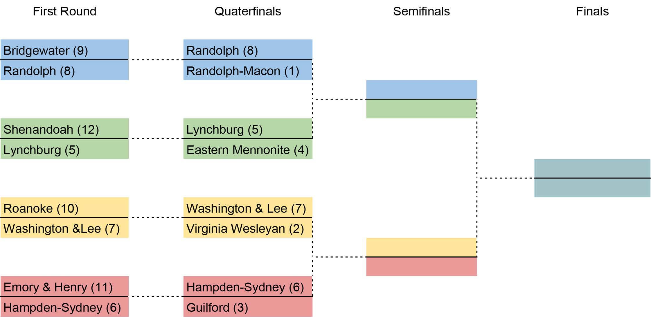 the tournament. The team will not compete until Thursday evening, against the Washington and Lee Generals in the quarterfinals.
