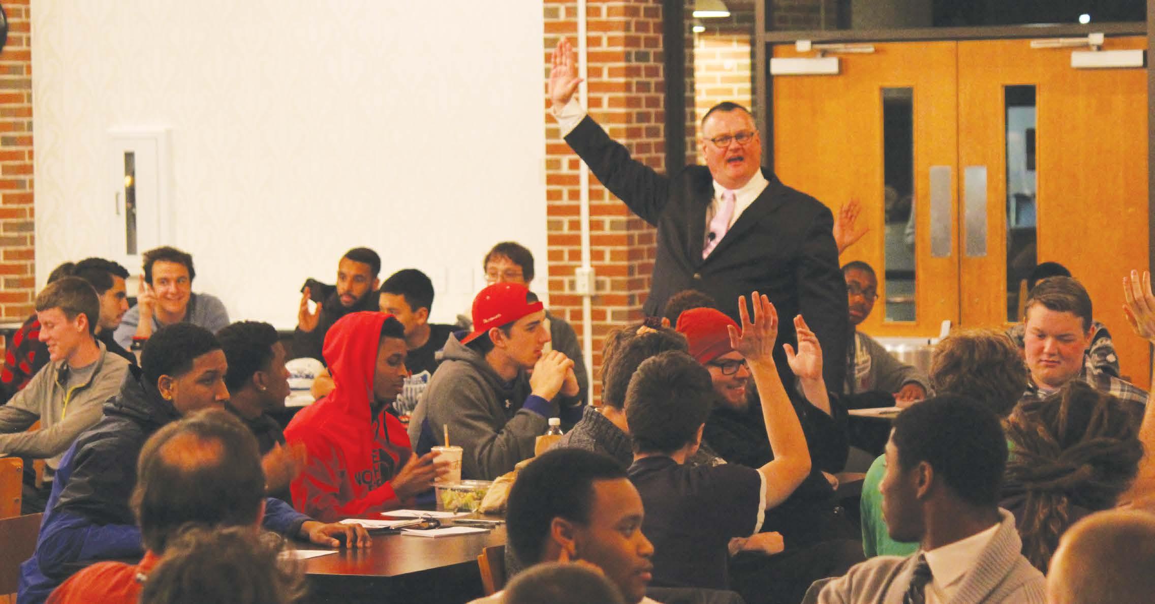 “We want men of honor; we want gentlemen!” Dr. Barry A. Olson’s words rang out across the Boyd Dining Hall Feb. 19. Olson is a well-renowned student affairs profes-