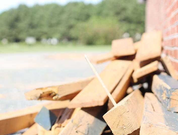 Piles of lumber cover the baseball field during rennovation. The new bleachers are projected to be ready by spring semester.