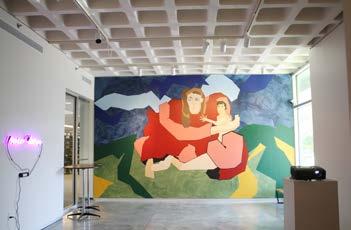 Artist and Virginia Wesleyan alumni ALXMCHL was one of six artists selected to show his artwork at the exhibit. His mural MTHRSON covers an entire wall of the exhibit, and is a colorful offspring of the cubist movement.