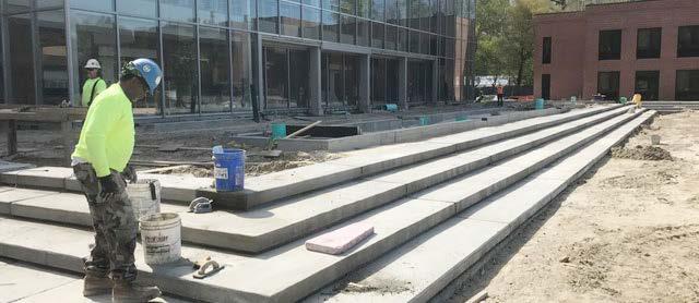 Construction crews from the company Hourigan work on the exterior of the Greer Environmental Sciences Center. The Center will be open for the fall 2017 semester.