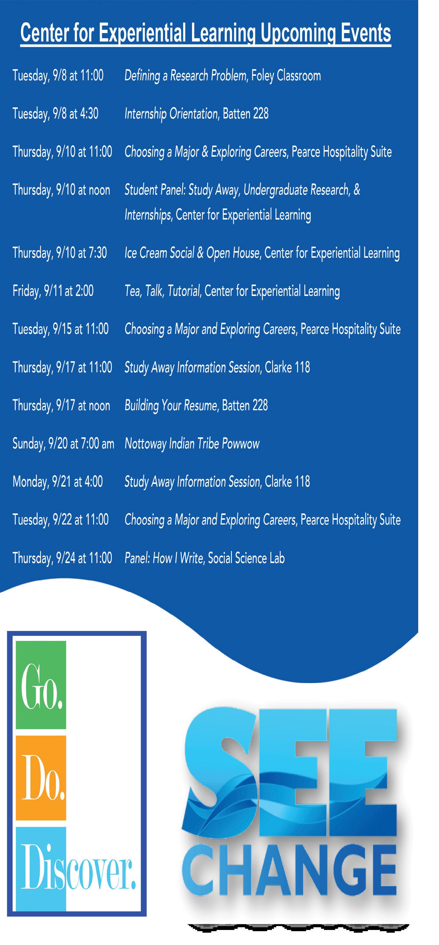 The Center for Experiential Learning welcomes students with an informative display.