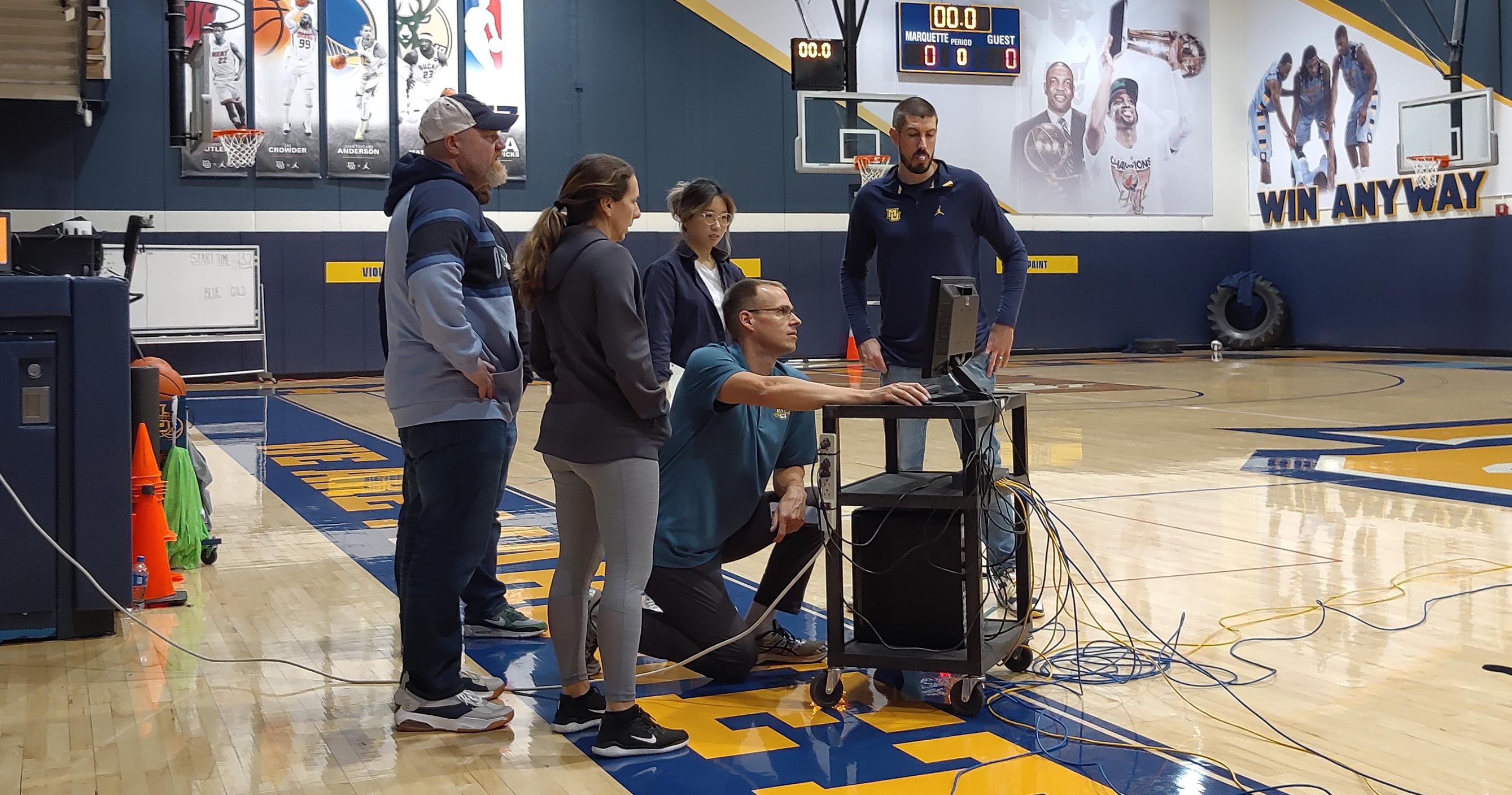 associate professor Kristof Kipp and the Marquette men’s basketball team conducted a baseline shooting lab inside the Kasten Gymnasium in the Al McGuire Center.