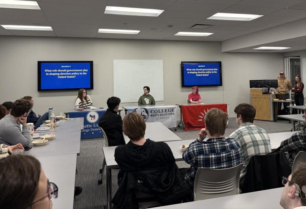 Three of Marquette University’s political student groups came together the evening of Feb. 19 to converse about gun rights, abortion rights, artificial intelligence and immigration policies without debating amongst each other.