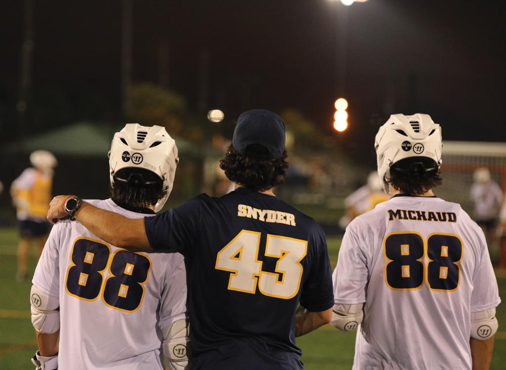 the men’s lacrosse head coach a moment of peace. The dressing room door would shut behind him and he’d be away from the swirling world above him. Then, he could focus. It became a safe haven for him to quietly think about Michaud and Snyder’s lives. It’s the place he feels them the most.