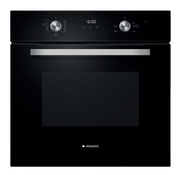 Dentro del amplio catálogo de la firma, en la gama de cocción destaca el horno AHM8700DCN, un modelo multifunción, con capacidad de 70 l y 8 programas de cocción (Abajo, Abajo+arriba, Abajo+arriba+ventilador, Descongelación, Doble Grill, Doble Grill+ventilador, Eco y Grill). Además, incluye las funciones de limpieza vapor, luz del horno y ventilador. Se caracteriza no sólo por sus características, sino también por su elegante diseño con tirador y mandos tipo push&pull en inox. Equipado con panel display Led manual, así como con puerta abatible con cristal de doble capa extraíble, cuenta también con luz interior, dos guías telescópicas desmontables y guías soporte bandejas. Es clase A en eficiencia energética. Este horno de Aspes está disponible en 3 colores: blanco, negro y acero inoxidable (AHM8700DCN/B/X).