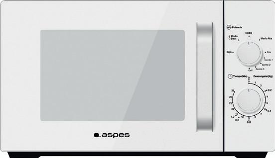 Para una cocina sencilla y rápida nada mejor que un microondas y Aspes propone dos modelos de libre instalación, con control electrónico y 20 l de capacidad. Se trata de AMW120BE, con 700 W de potencia y 5 programas de cocción (bajo, medio, alto, medio-bajo y medio-alto); y de AMW120BEG, con grill, potencia de 700 W y 1.000 W el grill, y con 9 programas de cocción: 5 niveles de potencia, combi 1, combi 2, combi 3 y grill. Ambos modelos disponen de luz Led interior (reemplazable), plato giratorio de cristal temporizador electrónico 0-35 minutos y función descongelación por peso. Además, incluyen tapadera de plástico y el AMW120BEG suma soporte rejilla metálica. En cuanto a diseño, disponen de puerta en blanco espejo, tirador inox e interior gris.