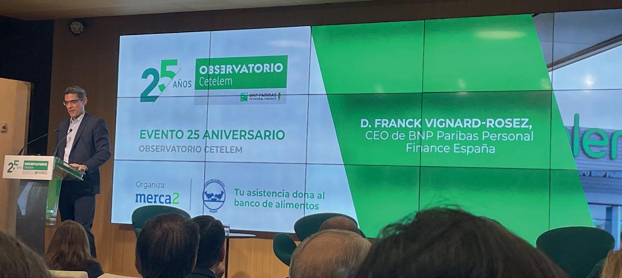 El pasado 13 de diciembre se celebró en Madrid el 25 aniversario del Observatorio Cetelem, en un acto presentado por Luján Argüelles al que acudió Begoña Villacís, vicealcaldesa de Madrid, quien destacó la solidez, seriedad y confianza de BNP Paribas en la elaboración de este Observatorio. “Es fundamental que existan fuentes de datos fiables como Cetelem y seguro que estos son sólo los primeros 25 años”, señaló. En la bienvenida, Franck Vignard, CEO de BNP Paribas Personal Finance España, indicó que en estos 25 años en España el observatorio ha permitido detectar cambios significativos en el consumo y “acompañar a nuestros consumidores y clientes en la transición hacia un consumo más responsable y ecológico”. Liliana Marsán, responsable del departamento de investigación de mercados BNP Paribas Personal Finance y coordinadora desde hace 22 años del Observatorio Cetelem, hizo un repaso de los cambios en el consumo en estos 25 años destacando tres áreas: la movilidad eléctrica, la energía sostenible y la economía circular y la omnicanalidad.