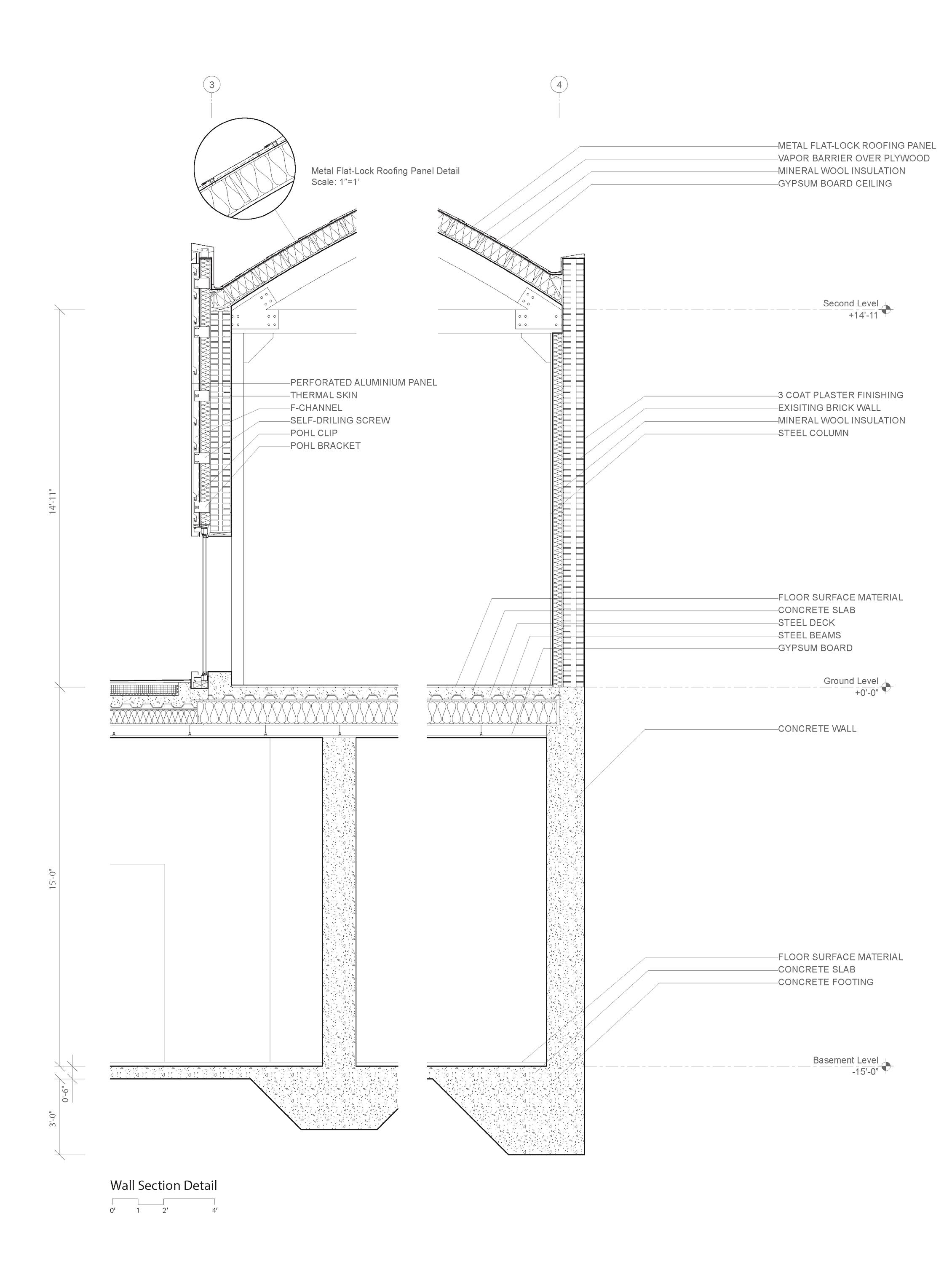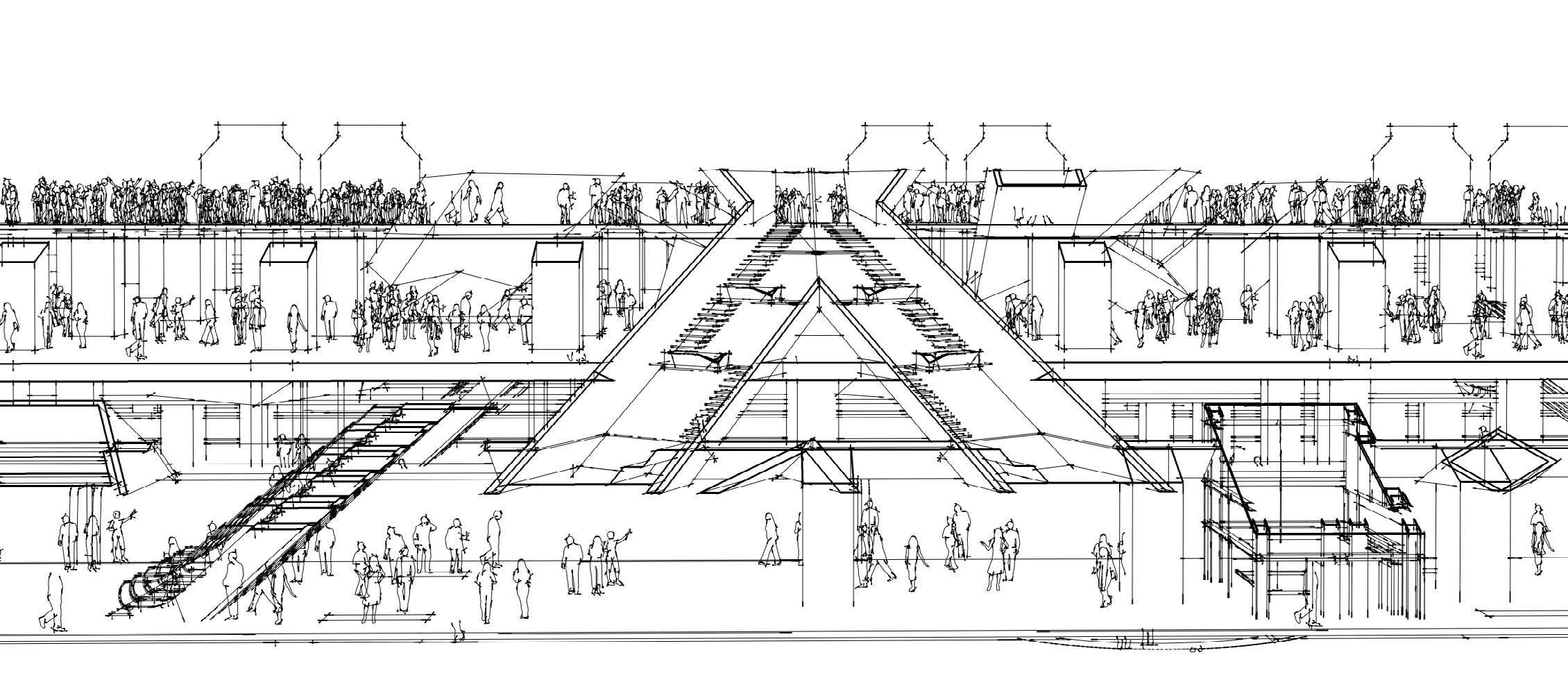 stretch of site along allowing it to reflect adjacencies. To ground our by aligning to the a concealing and from the exterior. which views to the other. The stepped the length of the public thoroughfare, program spillover and