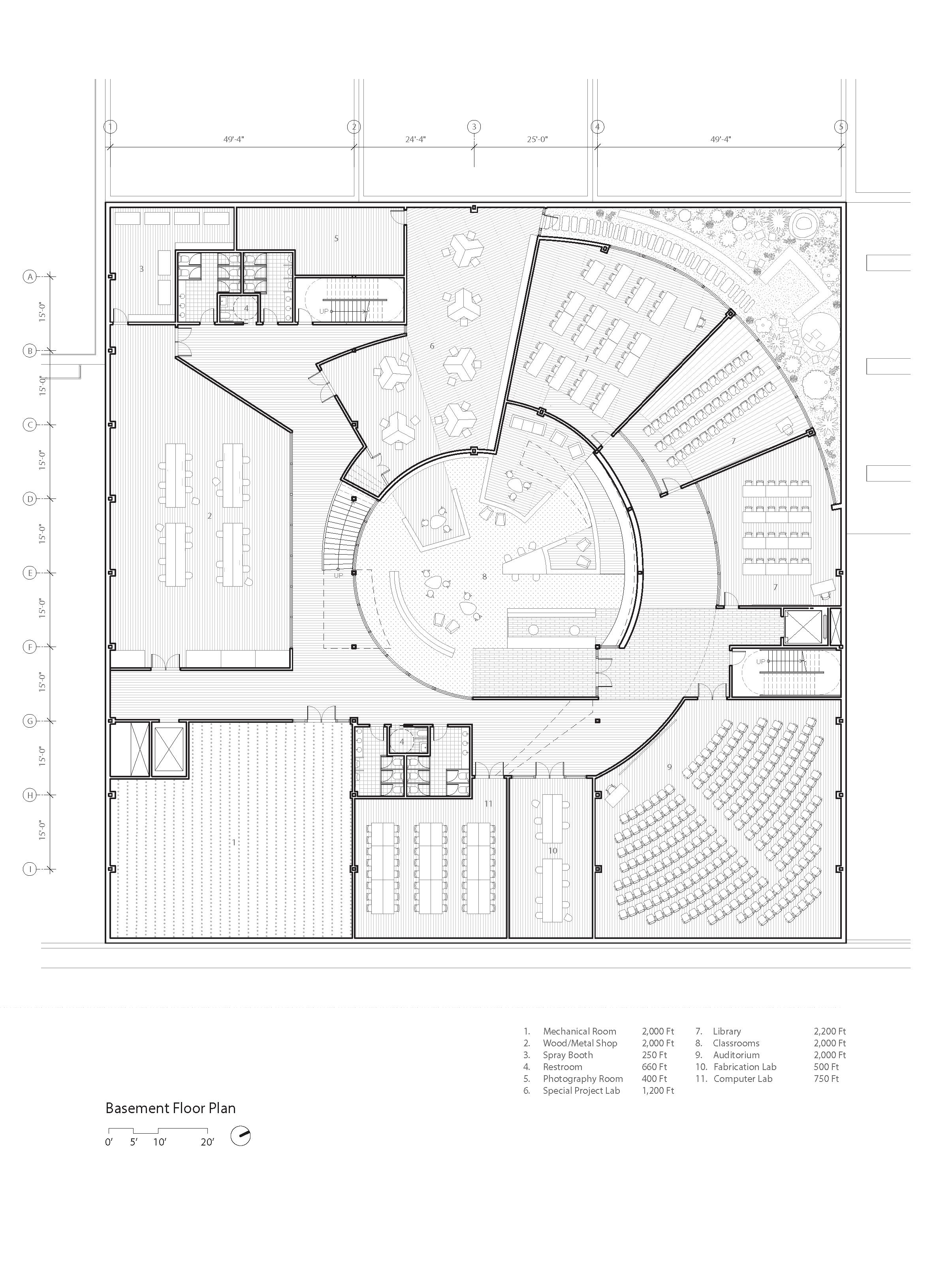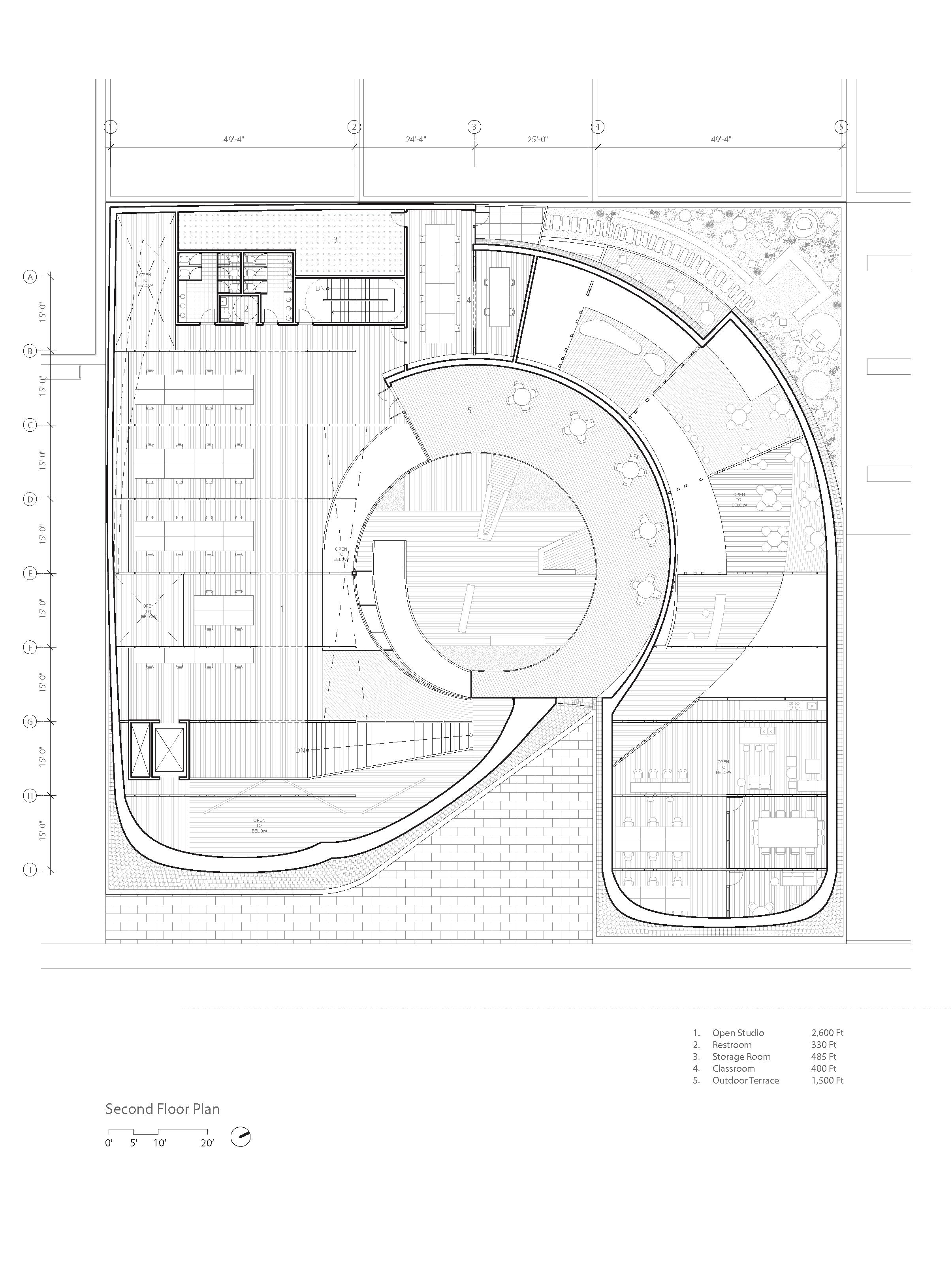 The layout carefully delineates public and private spaces to foster a balanced environment. The ground floor buzzes with public life, hosting educational facilities, a herbarium, workrooms, and exhibition areas designed to be open and inviting. In contrast, the second floor retreats into privacy, housing the seed vault, research labs, and select exhibition spaces, offering a tranquil atmosphere for focused activities.