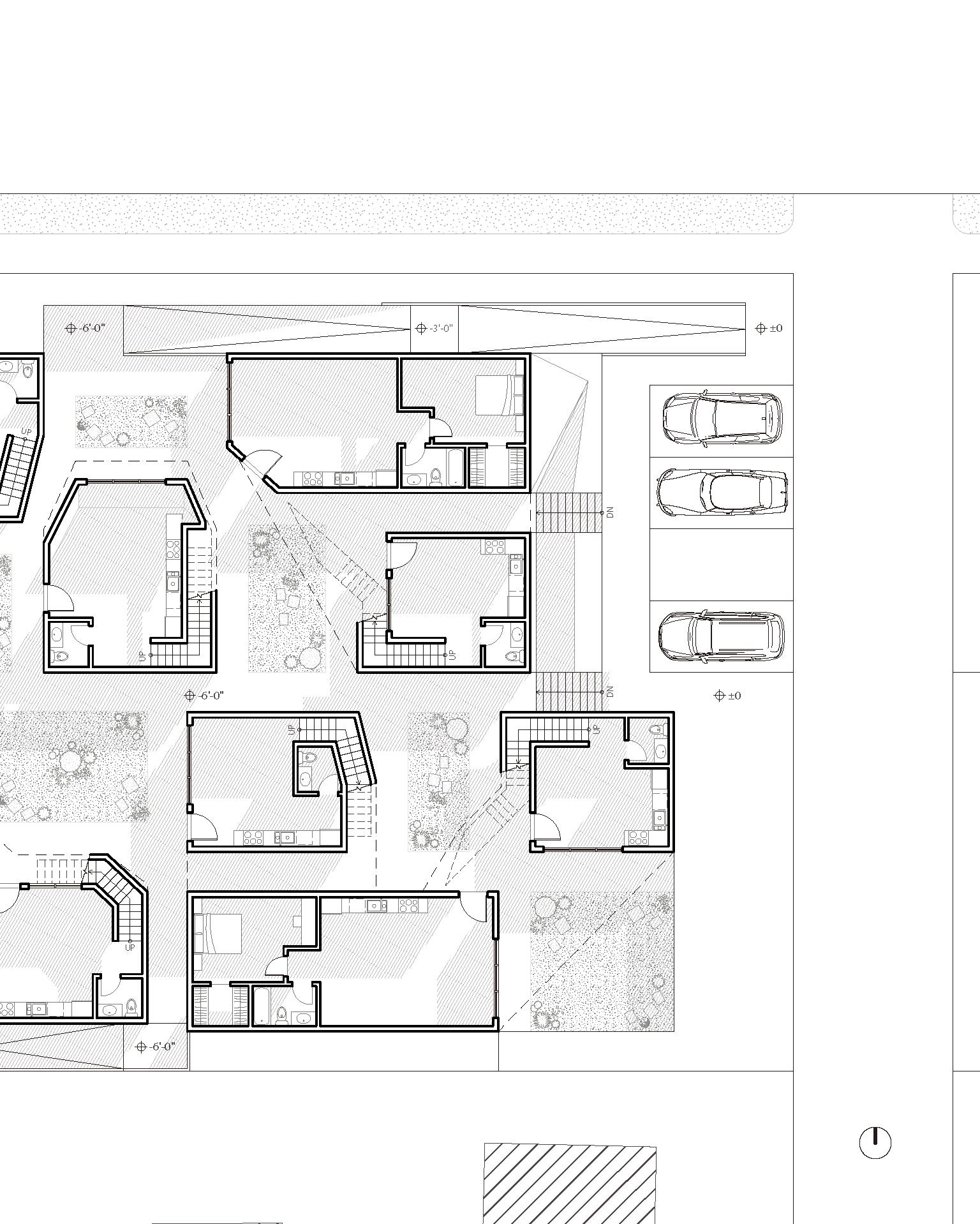 This project redefines single-family housing by integrating shared semiprivate courtyards that balance community interaction with personal privacy. Designed for 2–3 homes, these segmented courtyards are framed by the architecture, creating a “framed sensation” that enhances the spatial experience and fosters a sense of shared ownership.