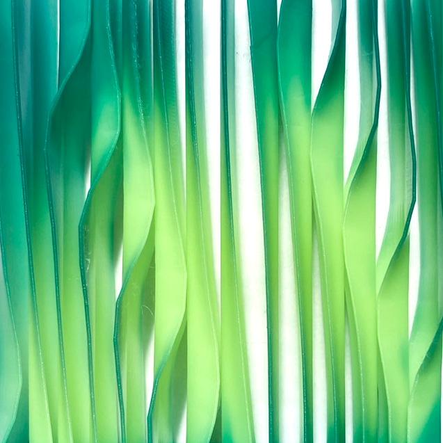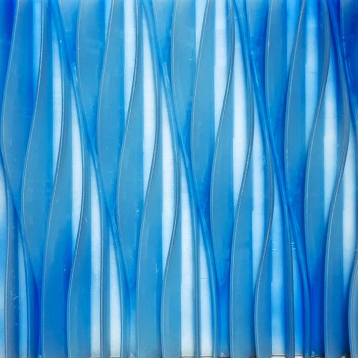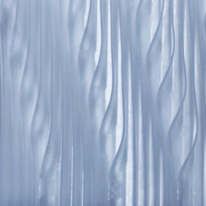 Thermochromic PLA shifts from blue to white at 31°C, making solar response visible on the surface.