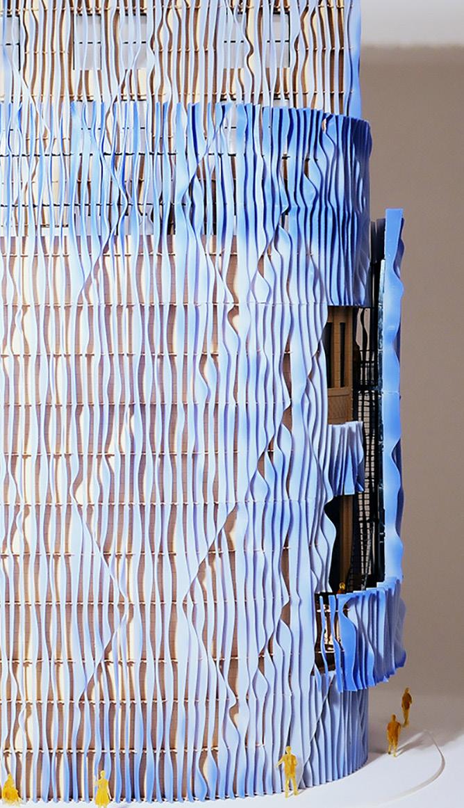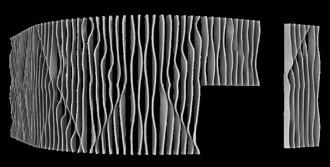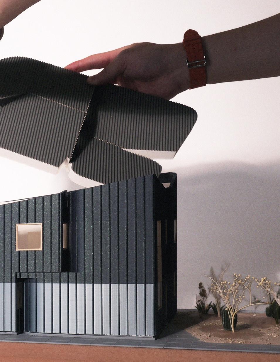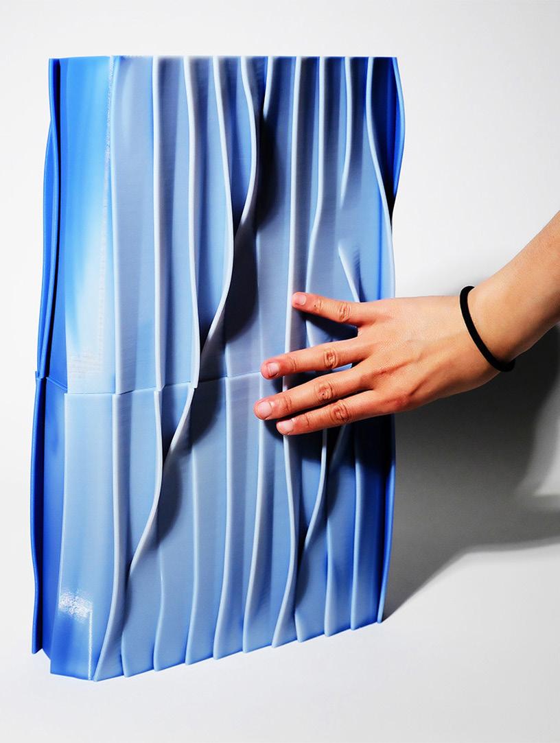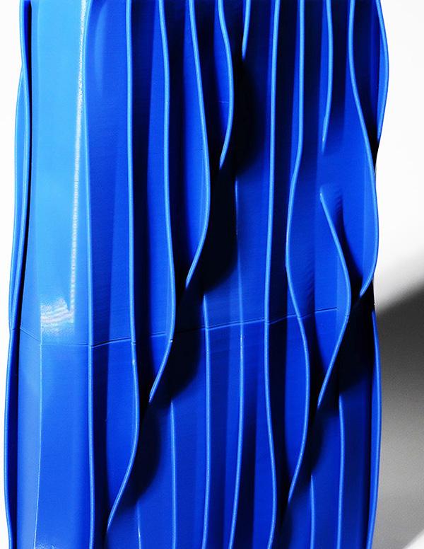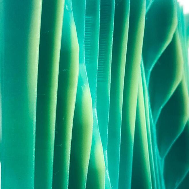 FDM-printed panel designed as a self-supporting façade component, reducing material waste while maintaining structural performance.