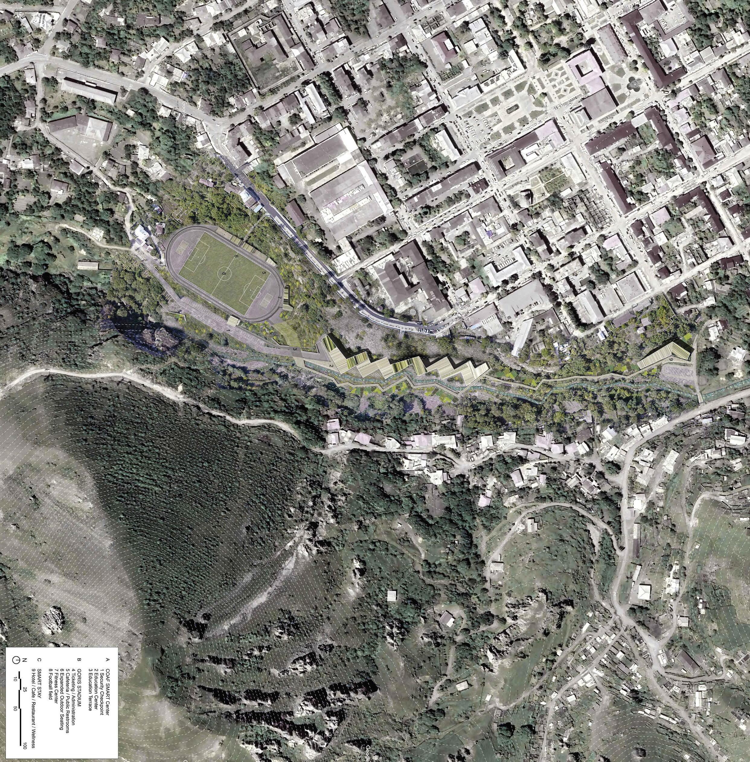 Contributed to full competition submission integrating site strategy, circulation, and visualization across a steeply sloped landscape; supported team's international competition entry from concept to presentation package.