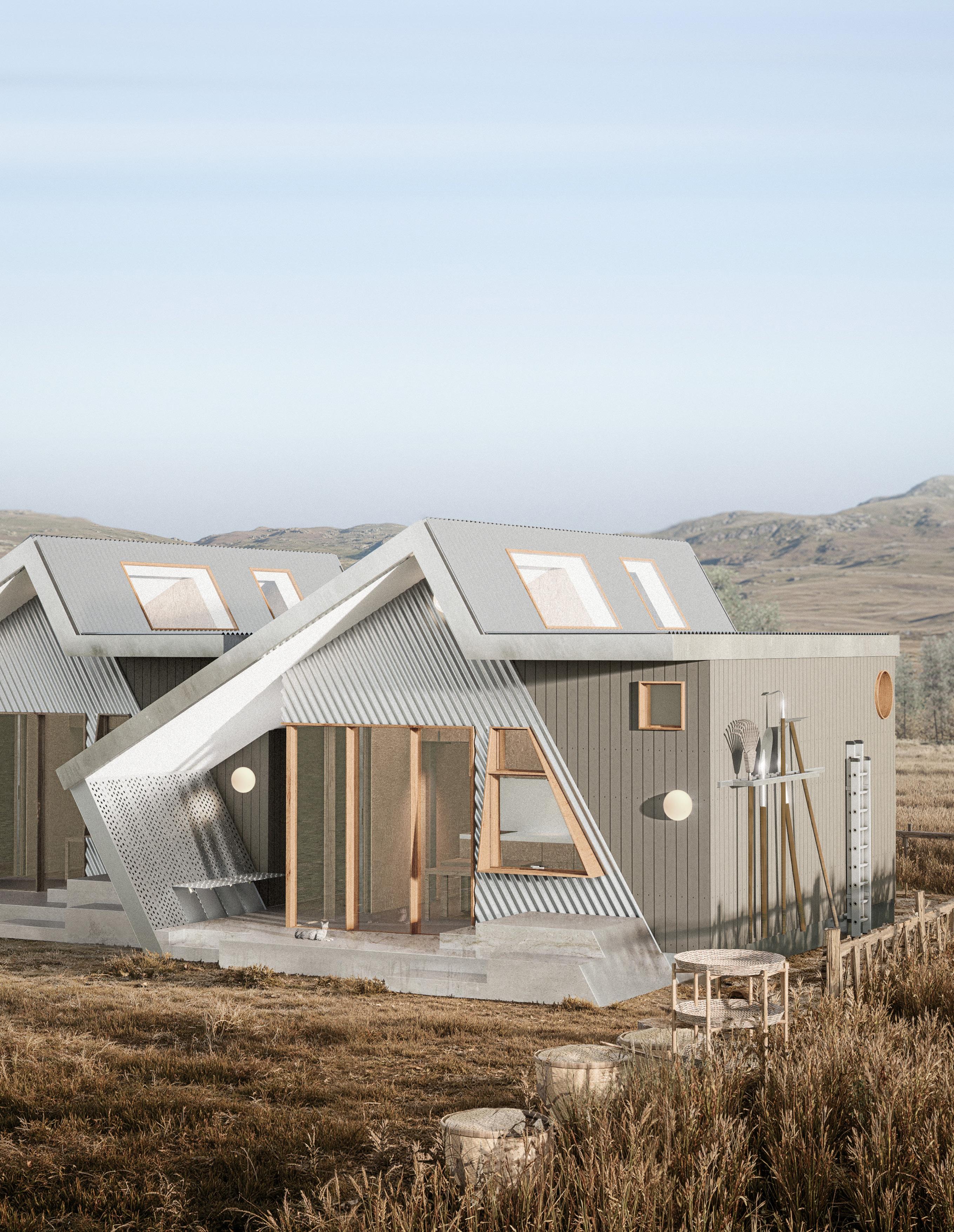 A transformable “L-Module” shifts between seasonal residential and commercial use — negotiating between mobility, permanence, and environmental responsiveness through adaptable envelopes and off-grid systems.