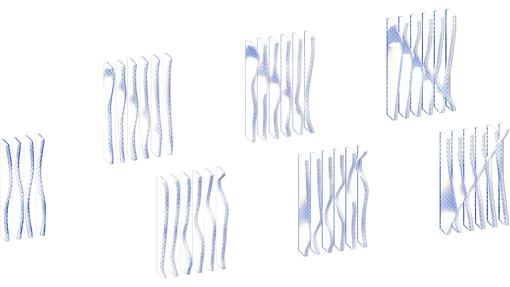 Seven lamella typologies function as combinatorial units — grouped in sets of five and varied through mirroring and rotation to generate the full façade composition in response to solar exposure.