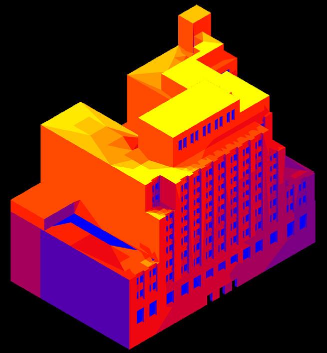 Solar analysis directly informs lamella density and depth, increasing shading on highexposure façades while maintaining openness and visibility elsewhere.