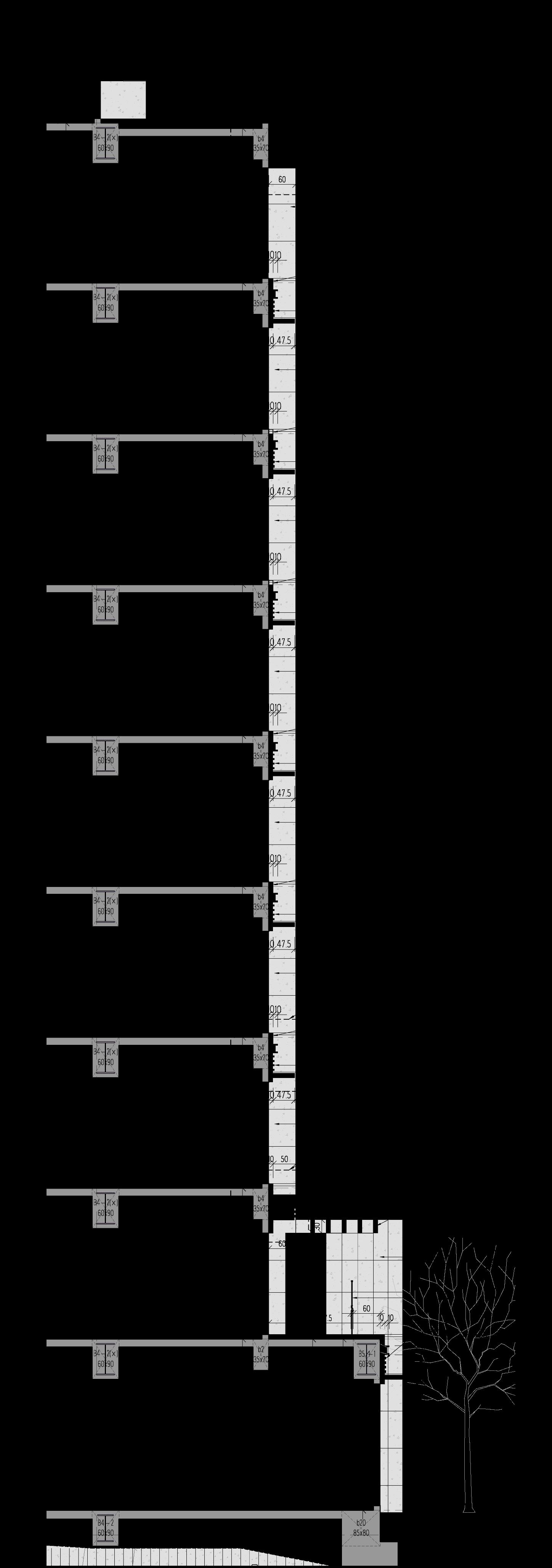 Adaptive reuse proposal retaining historic trusses as primary structur | CD-level wall sections resolving façade-to-structure interfaces.