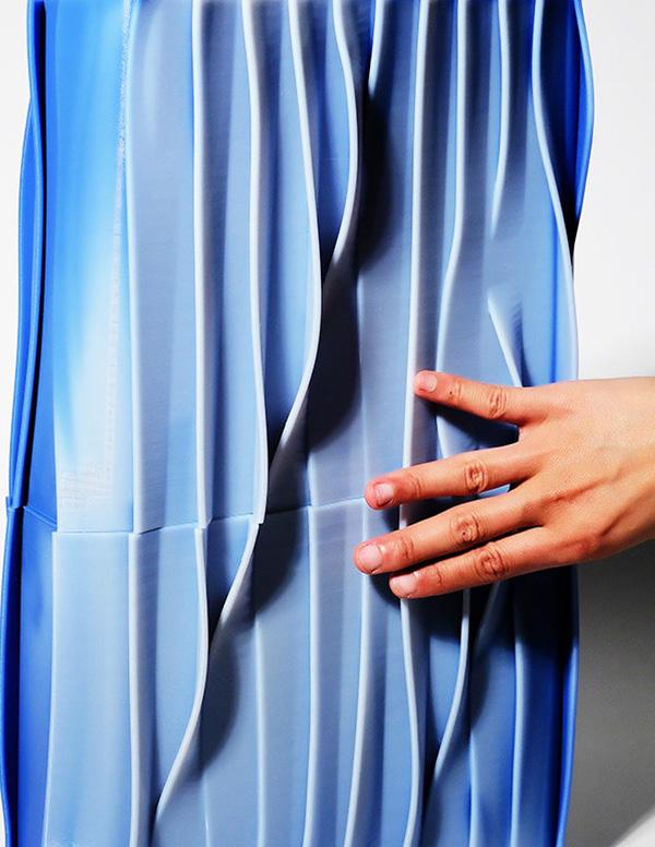 The thermochromic PLA skin acts as a tactile interface, visually shifting from blue to white at 31°C. This passive reaction visualizes thermal transfer in real-time.