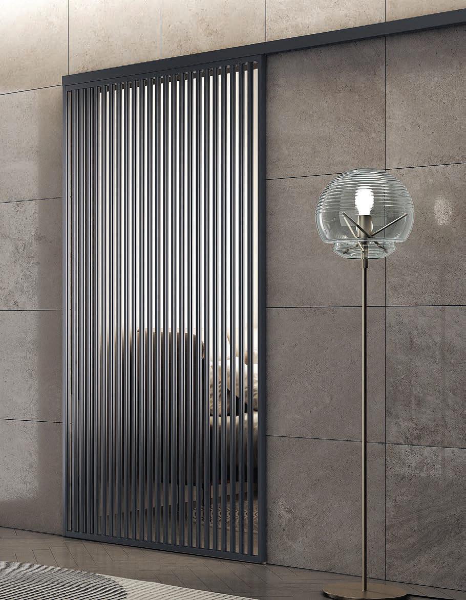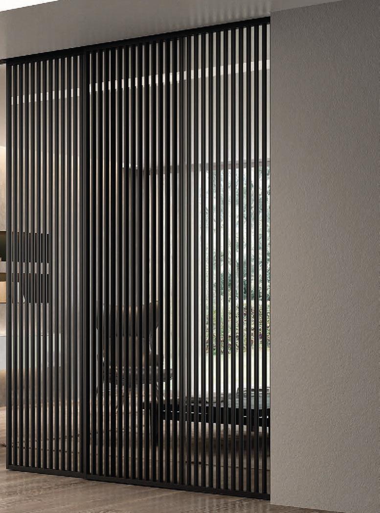 Plana Nevada / Telaio perimetrale in alluminio. Dimensione massima delle ante realizzabili per Plana, scorrevole sospesa, mm 1500x3000 H. Tipologia a settori orizzontali. Frame in aluminium. Max size possible for a sliding suspended Plana door mm 1500x3000 H. Model with horizontal sectors.