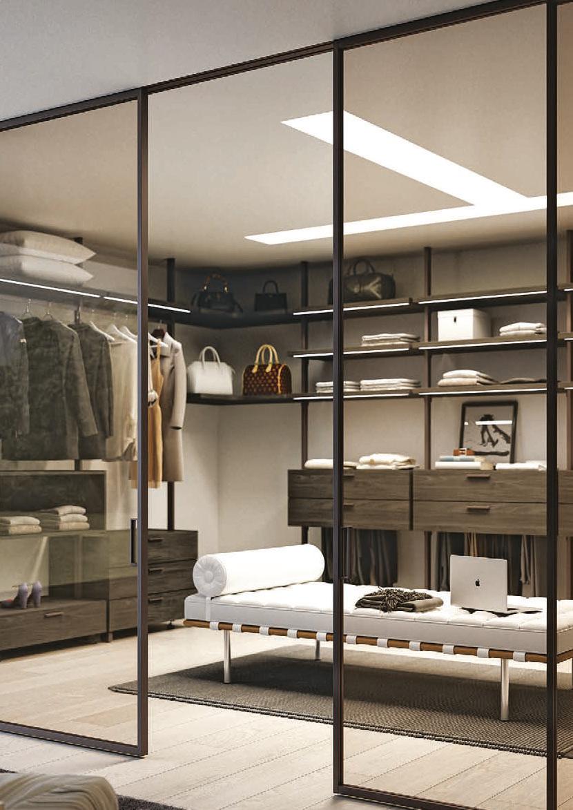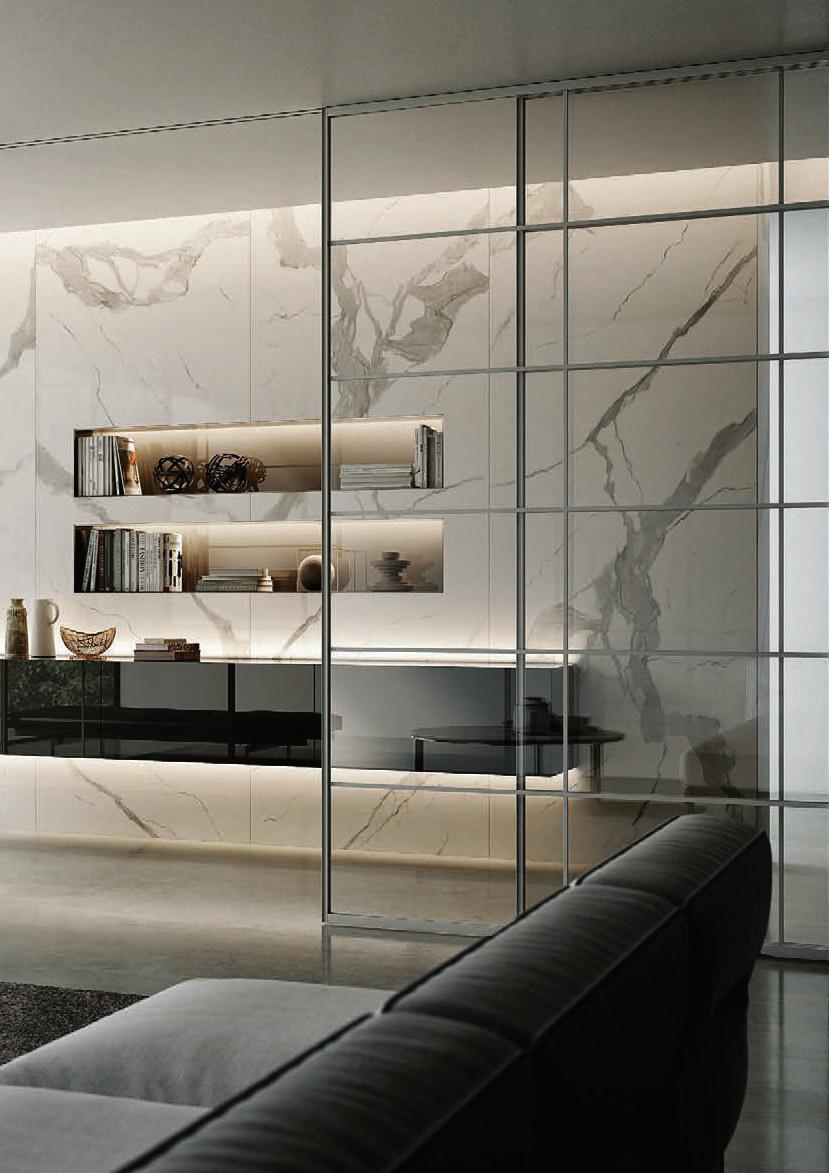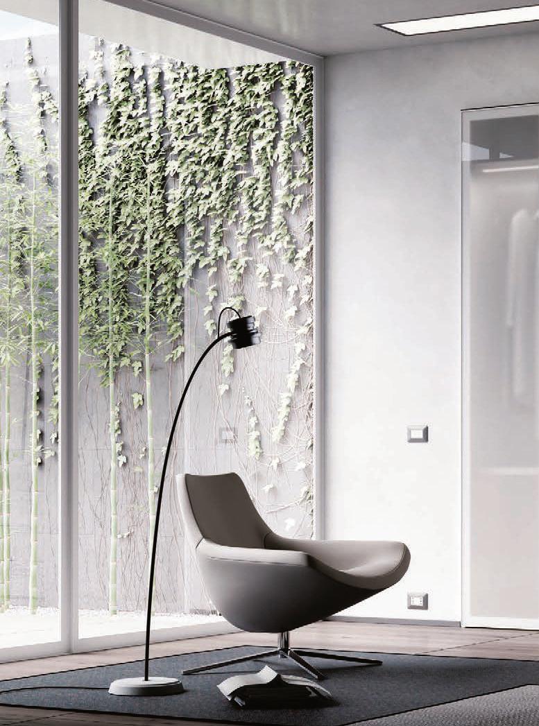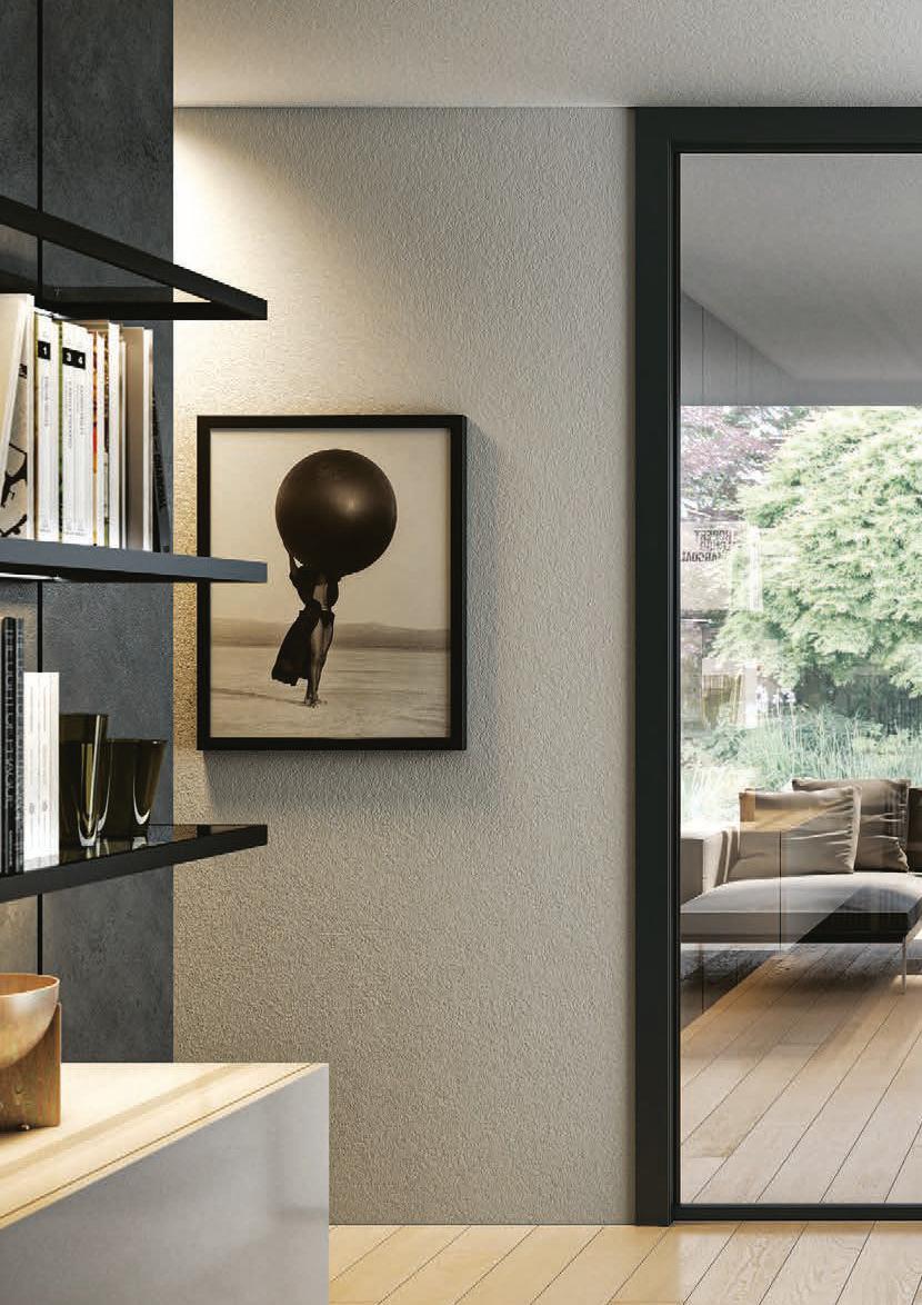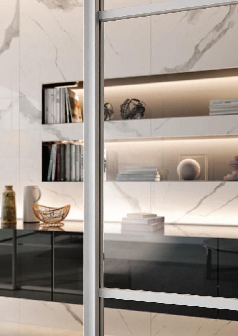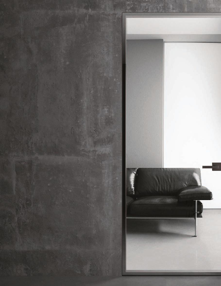 Il profilo a vista minimale scompare a filo parete. / The barely visible frame melts into the wall.