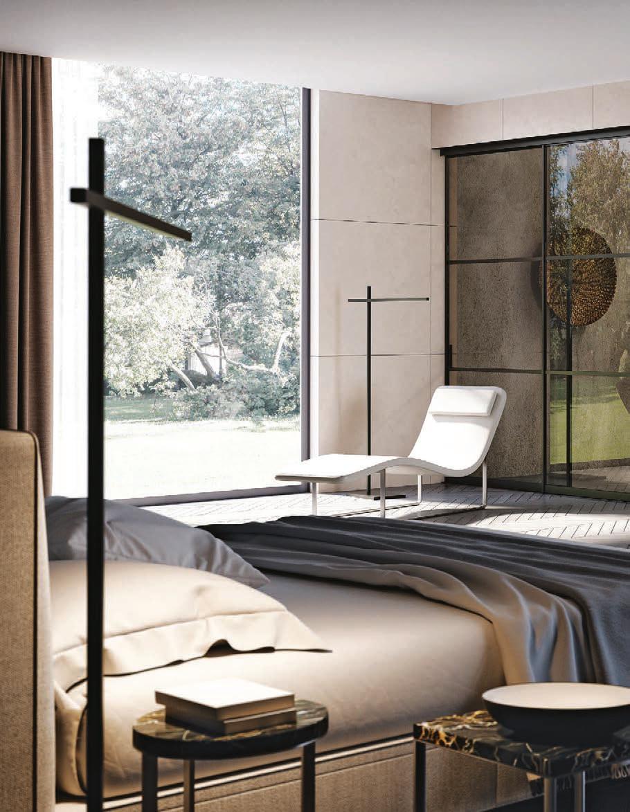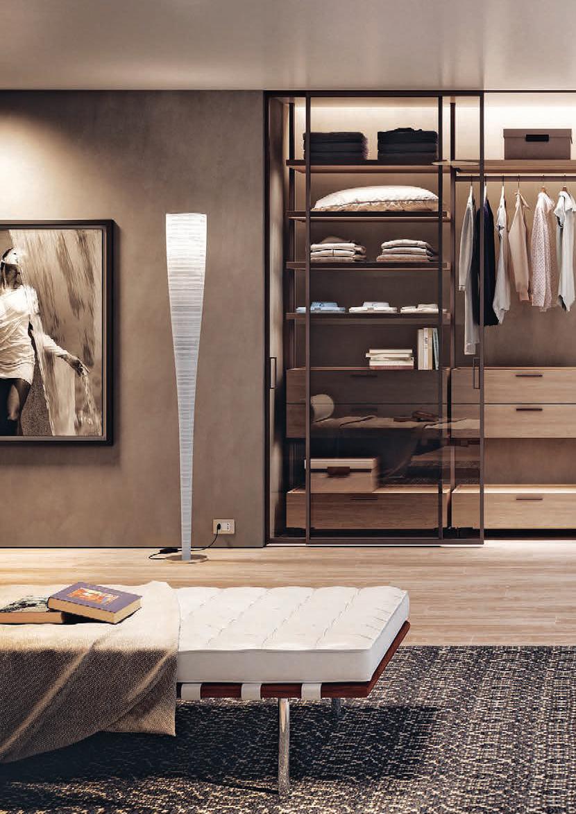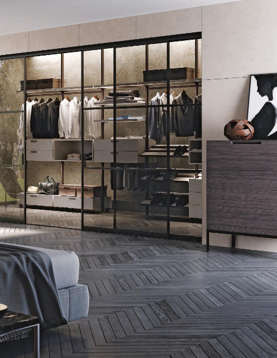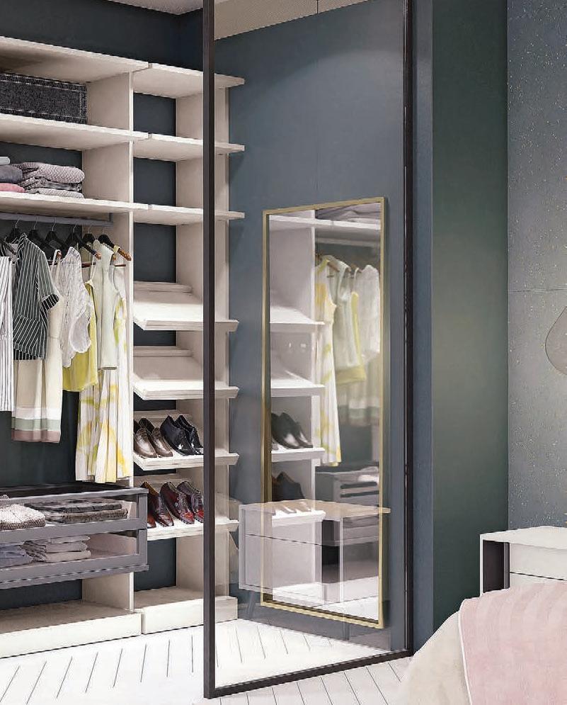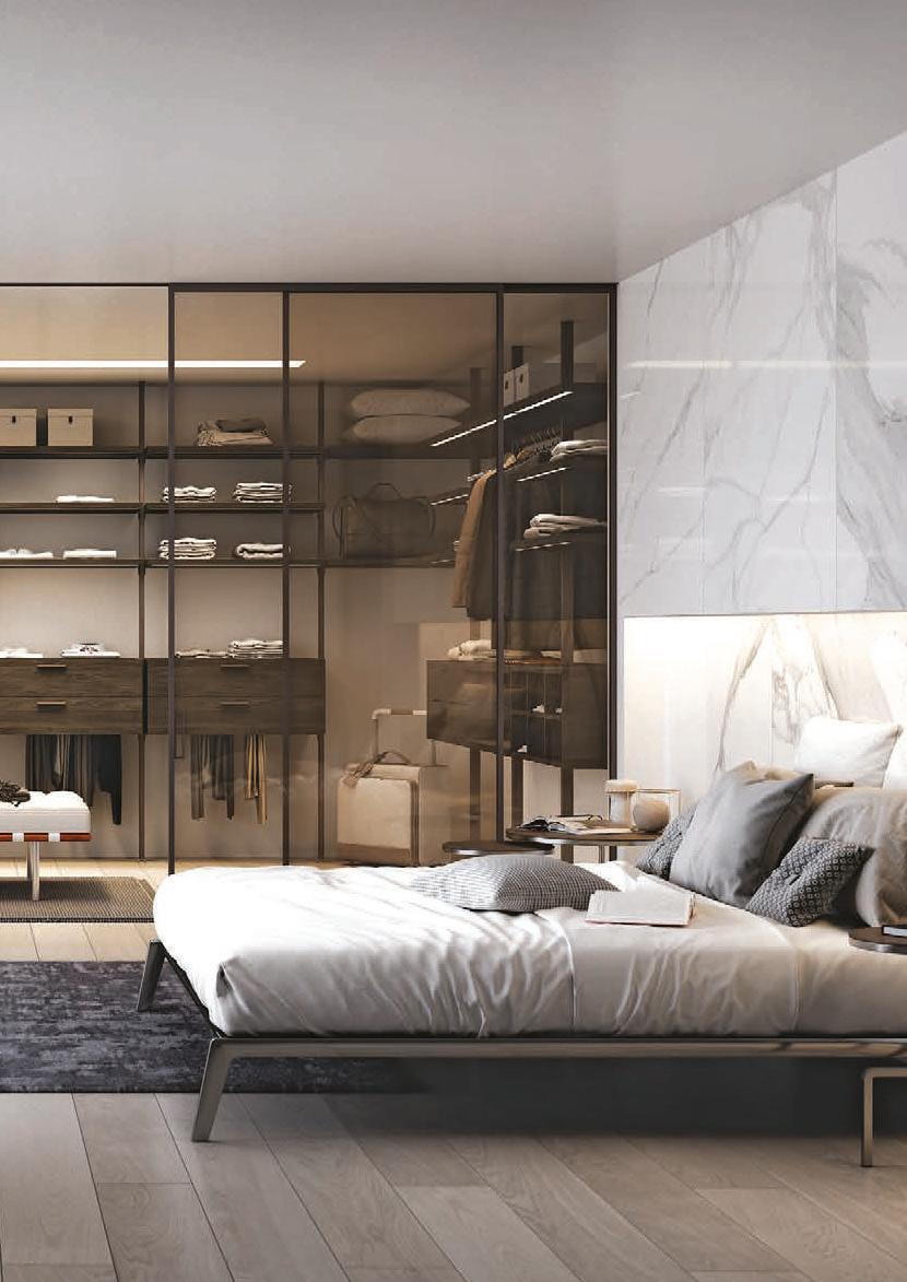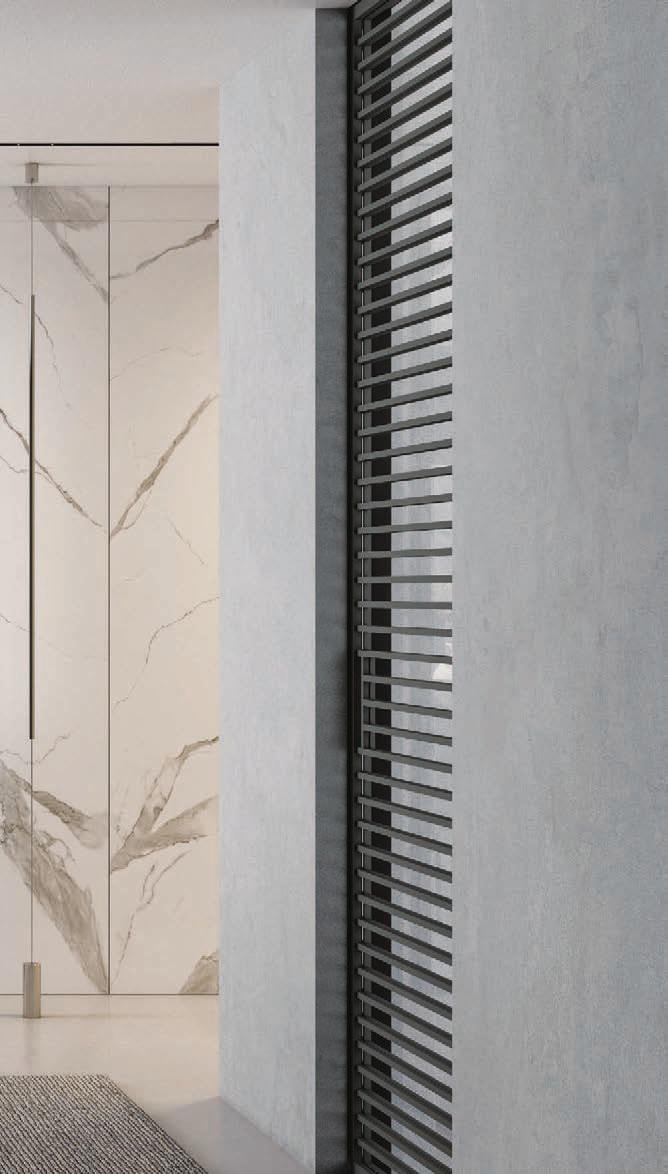 Il profilo a vista minimale scompare a filo parete. / The barely visible frame melts into the wall.